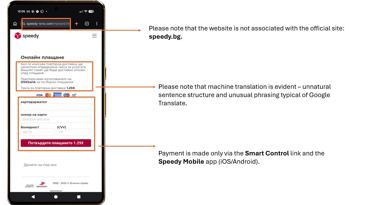 The above campaign represents a misuse of Speedy’s name, as well as the trust we have built together with our customers over the years. The relevant state authorities have been notified.