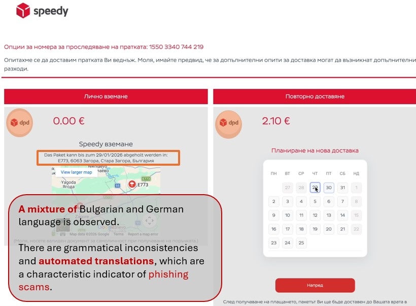 We have received reports from online users that misleading email messages are being sent in the name of Speedy, redirecting recipients to a fraudulent website. Please note that criminals have created a website that closely resembles Speedy’s official website. On this fake website, users are prompted to enter personal data and bank card information.