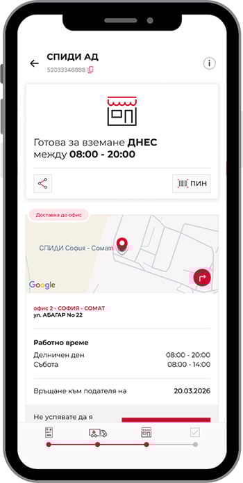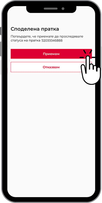 Чрез приложението изпращате линк с детайли за пратката, който дава достъп до актуален статус, информация за доставка и възможности за управление.